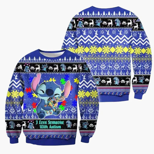 Unisex Weihnachts-Pullover Merry Stitchmas – Lustiger Cartoon Ugly Christmas Sweater