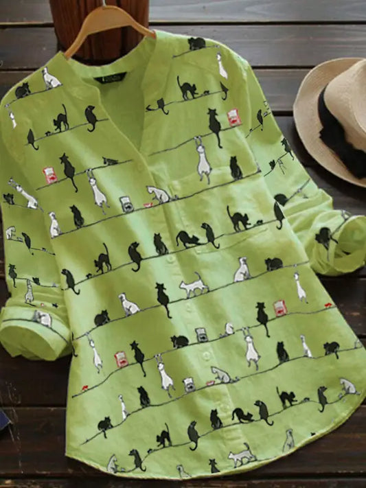 Cathy - Langarmbluse mit Katzenmuster