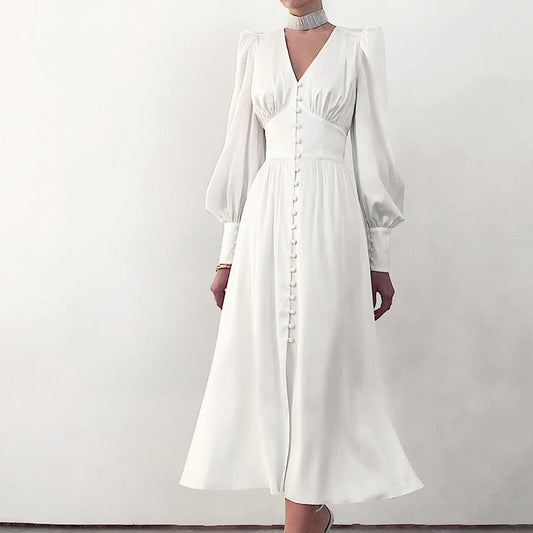 Leichtes Sommerkleid Damen – Elegantes Langarmkleid mit Knopfleiste für besondere Anlässe