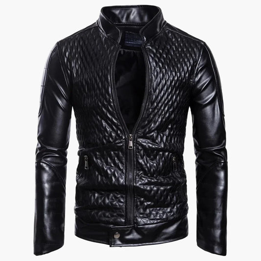 Herren Übergangsjacke im Biker-Stil mit Stehkragen und Rauten-Design – Perfekt für Alltag und Freizeit
