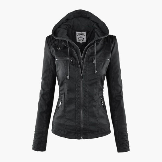 Damen Herbstjacke – Modische Bikerjacke mit Kapuze und Reißverschluss für Alltag und Freizeit