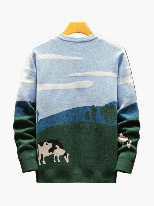 Herren Pullover mit Landschafts- und Tiermotiv, Casual Style für Herbst und Winter