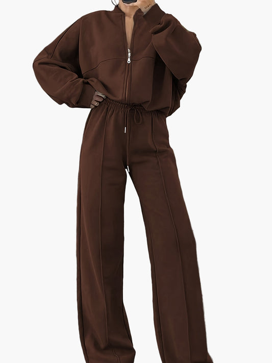 Damen Freizeit Sportanzug Set mit Reißverschlussjacke und Weithose – Lässige Mode für Alltag und Reise