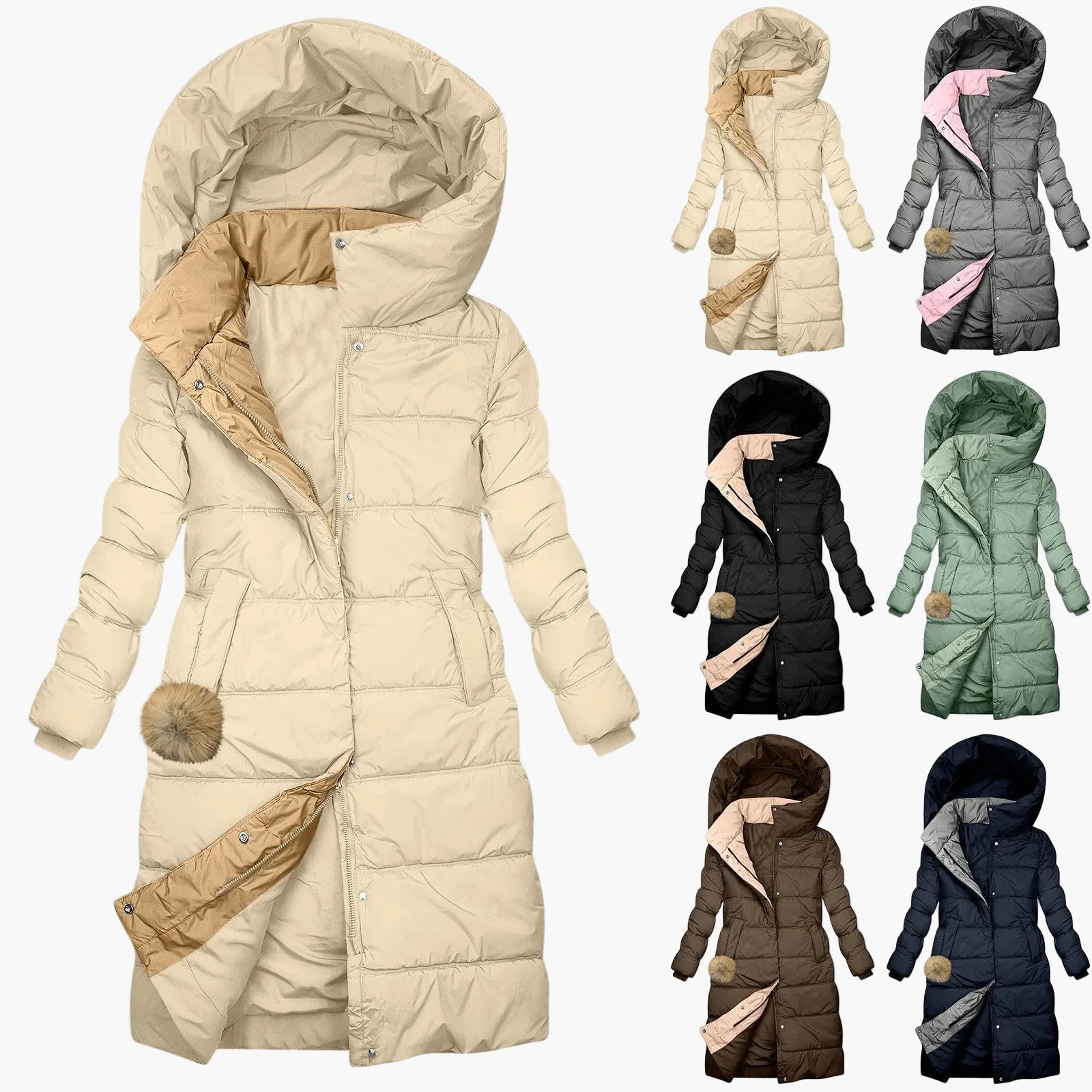 Abrigo de invierno acolchado para mujer con capucha – Chaqueta acolchada larga y cortavientos para día a día y ocio