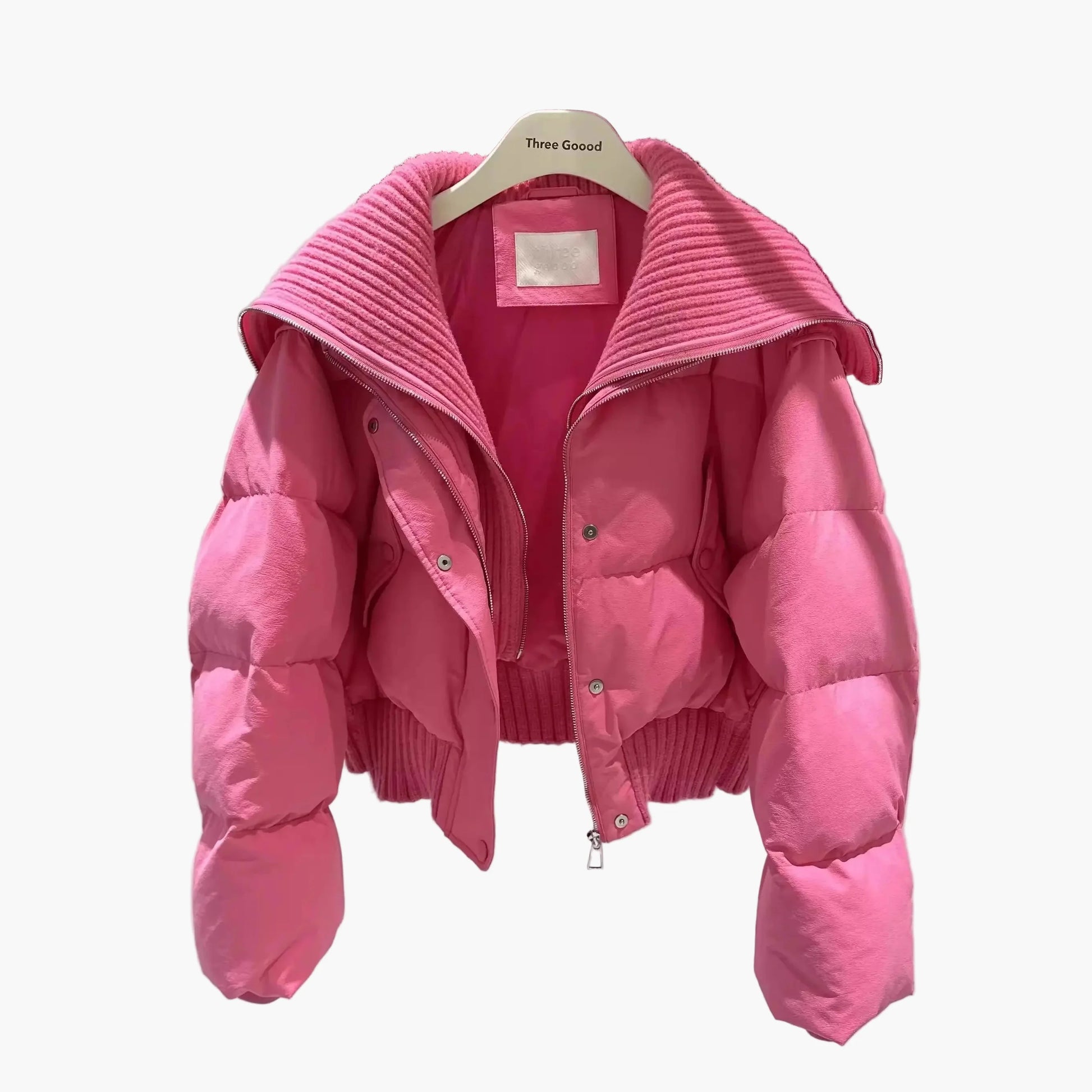 Dames steppjack met extra brede kraag – Modieuze winterjas voor dagelijks gebruik en vrije tijd