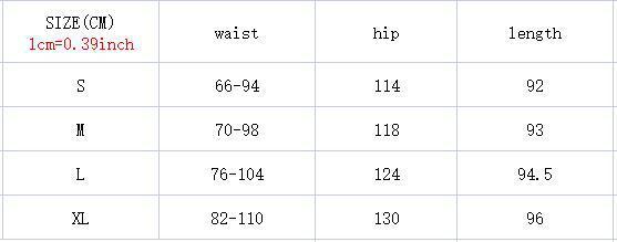 | Größe | Taillenumfang (cm) | Hüftumfang (cm) | Länge (cm) |