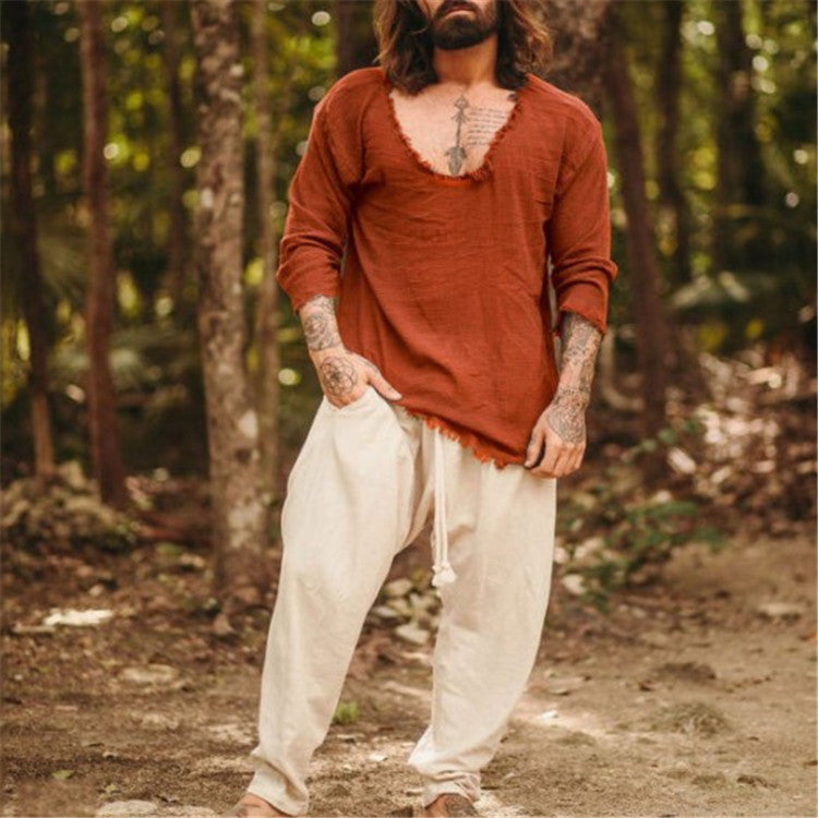 Christopher – Lässiges Shirt mit fransigem Rundhalsausschnitt in uni