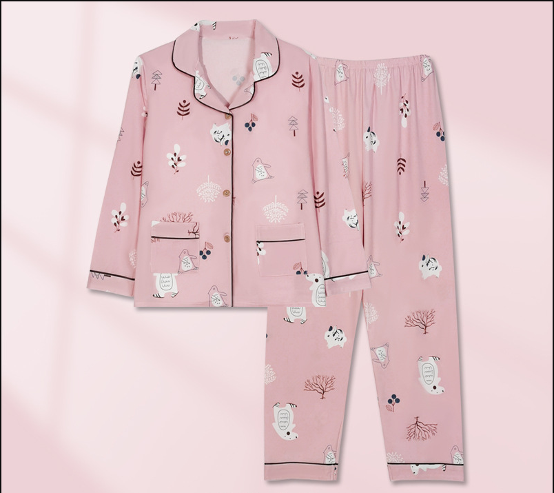 Verlieben Sie sich in gemütlichen Komfort mit diesem bezaubernden Schlafanzug für Damen mit niedlichem Herzmuster. Aus weicher, atmungsaktiver Baumwolle gefertigt, besteht das Set aus einem langärmligen Oberteil mit Knopfleiste und Brusttasche sowie einer langen Hose mit bequemem Gummibund. Perfekt zum Entspannen, Wohlfühlen oder erholsamen Schlafen.