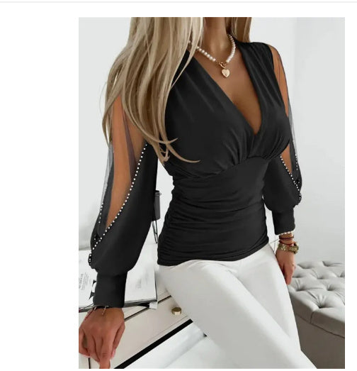 Upptäck den eleganta stilen med vår långärmade blus med V-ringning, dekorerad med fin spetsbroderi. Perfekt för speciella tillfällen eller vardagsbruk. Finns i flera färger som är lätta att kombinera. Denna modell erbjuder en bekväm passform och hög bärkomfort. Välj din favoritfärg nu!